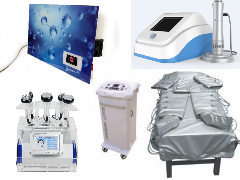 Equipos de criolipolisis para tratamientos de la celulitis, aparatos para drenaje linfático tipo LPG, presoterapia. Equipos de electroestimulación para tonificación, HIFU (para el tratamiento del rostro), etcétera.